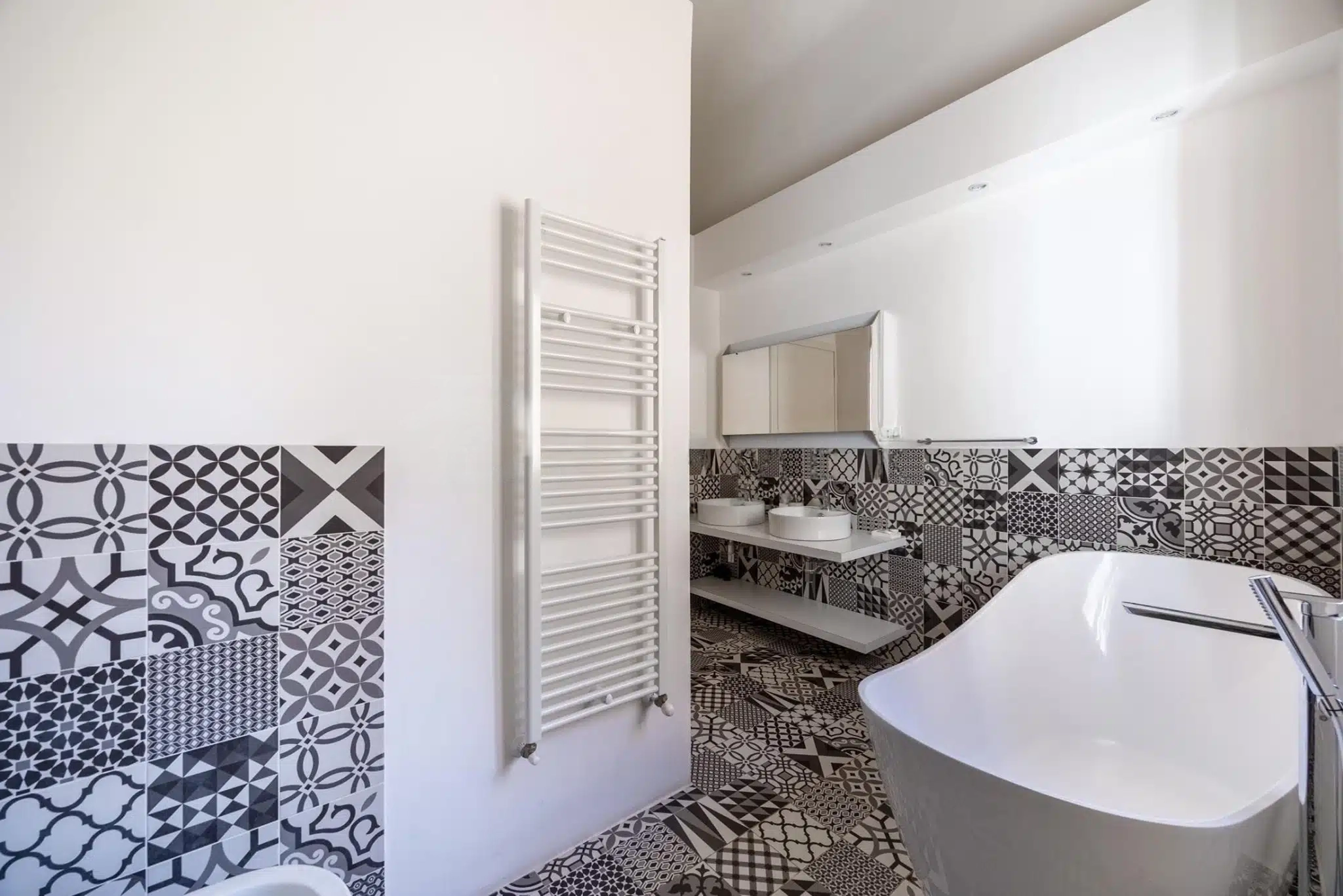 La zona notte è composta da tre ampie camere matrimoniali e da due bagni moderni e funzionali. Ogni ambiente è stato curato nei dettagli, combinando il fascino storico dell’immobile con il comfort contemporaneo.