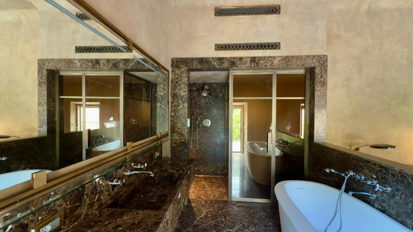 Primo piano: suite padronale con bagno a vista dotato di vasca, ampia cabina armadio e accesso ad una terrazza abitabile.