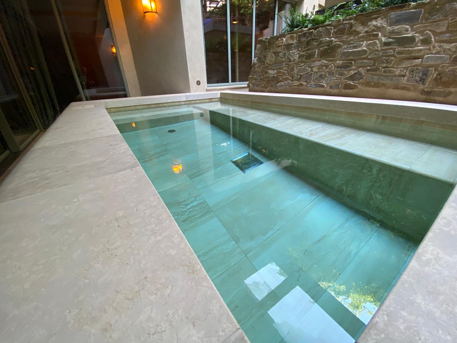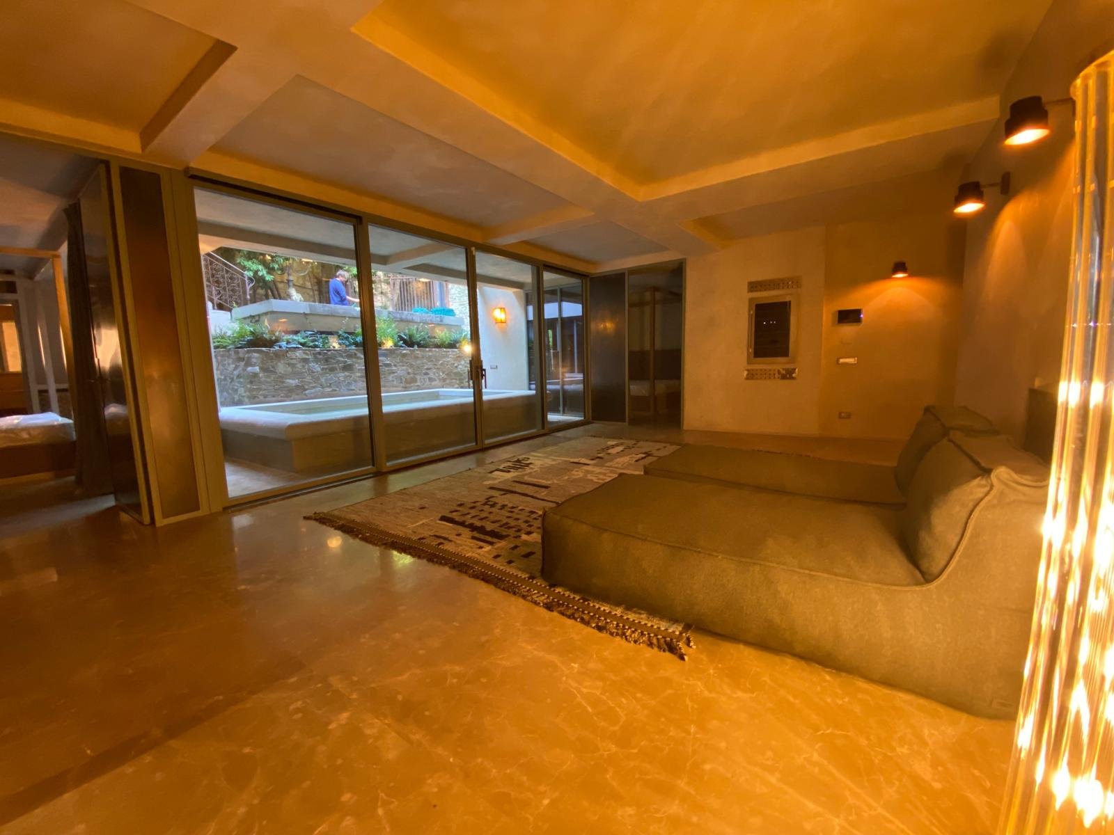 Piano inferiore: area fitness, zona benessere con bagno turco, due camere con bagno en suite affacciate sulla piscina con idromassaggio, oltre ad una sala cinema privata.