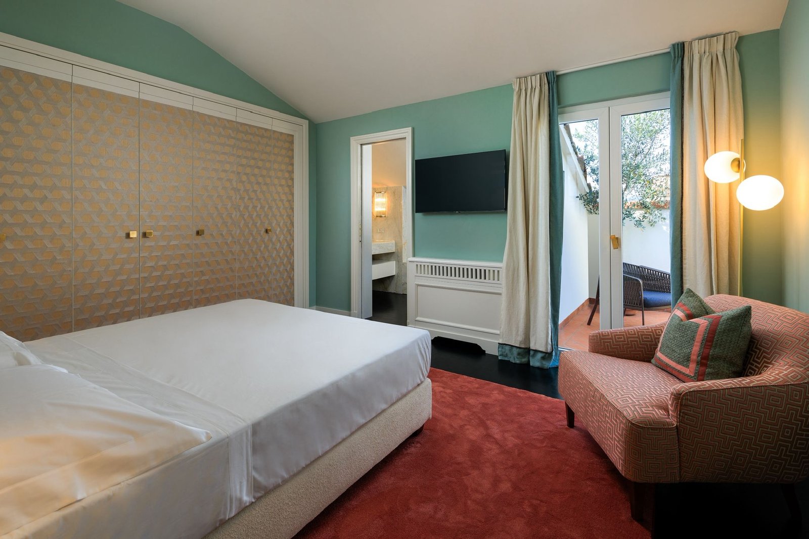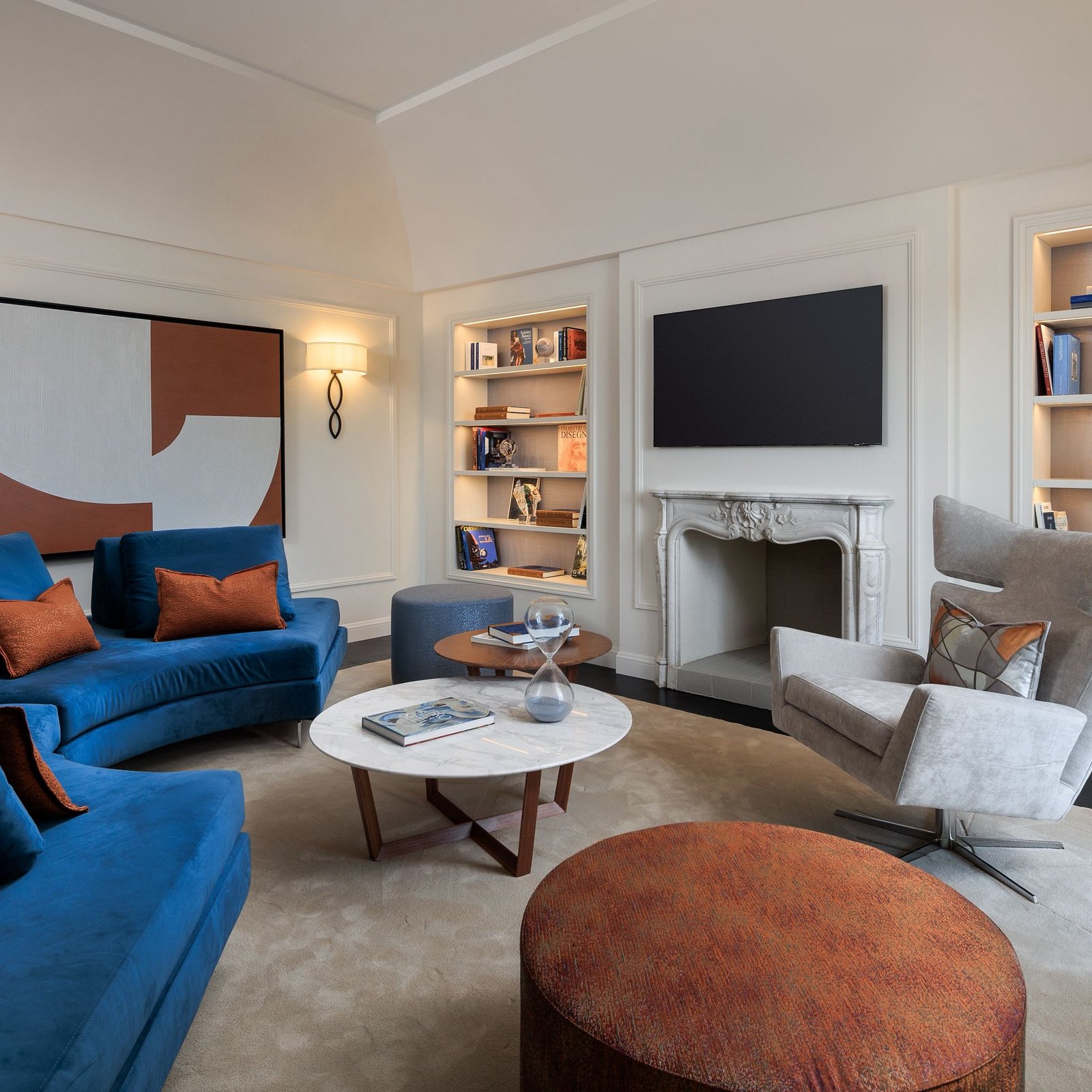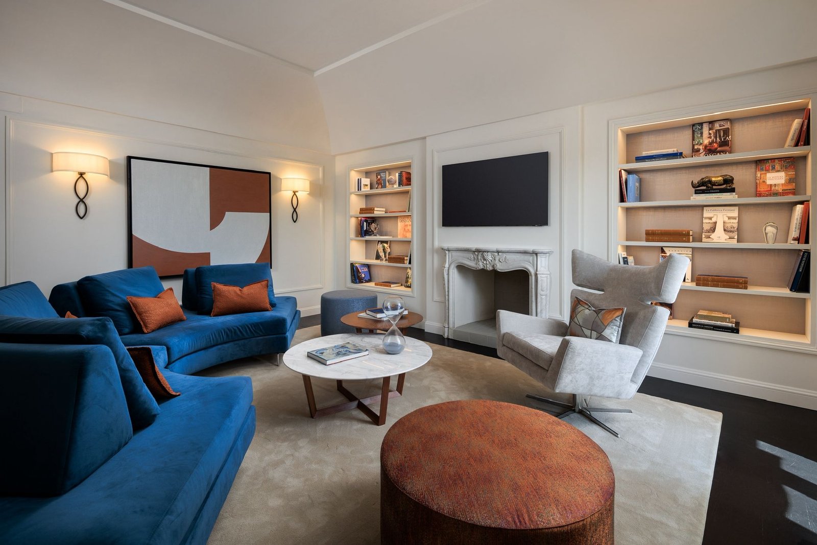Gli spazi interni uniscono comfort moderno e raffinatezza classica: quattro camere da letto arredate con gusto, ciascuna dotata di bagno privato in marmo, un ampio salotto con camino che invita al relax e una luminosa sala da pranzo perfetta per ricevere ospiti in un’atmosfera sofisticata.