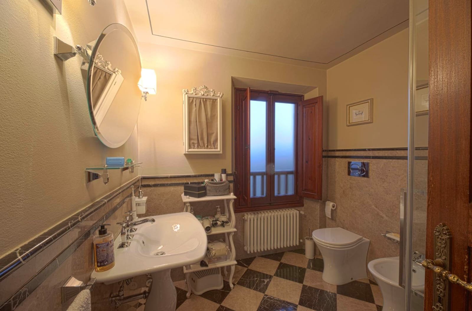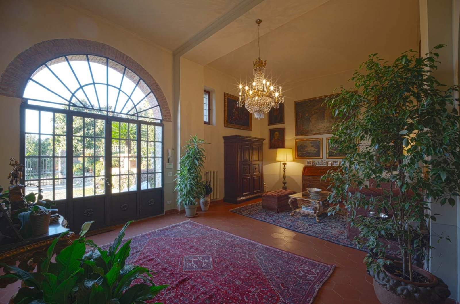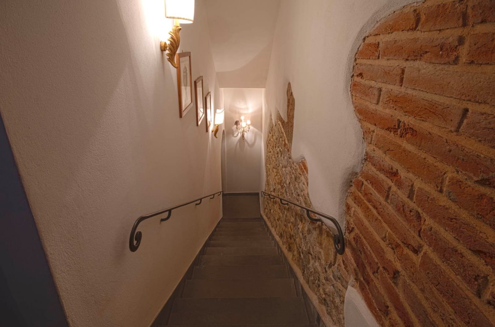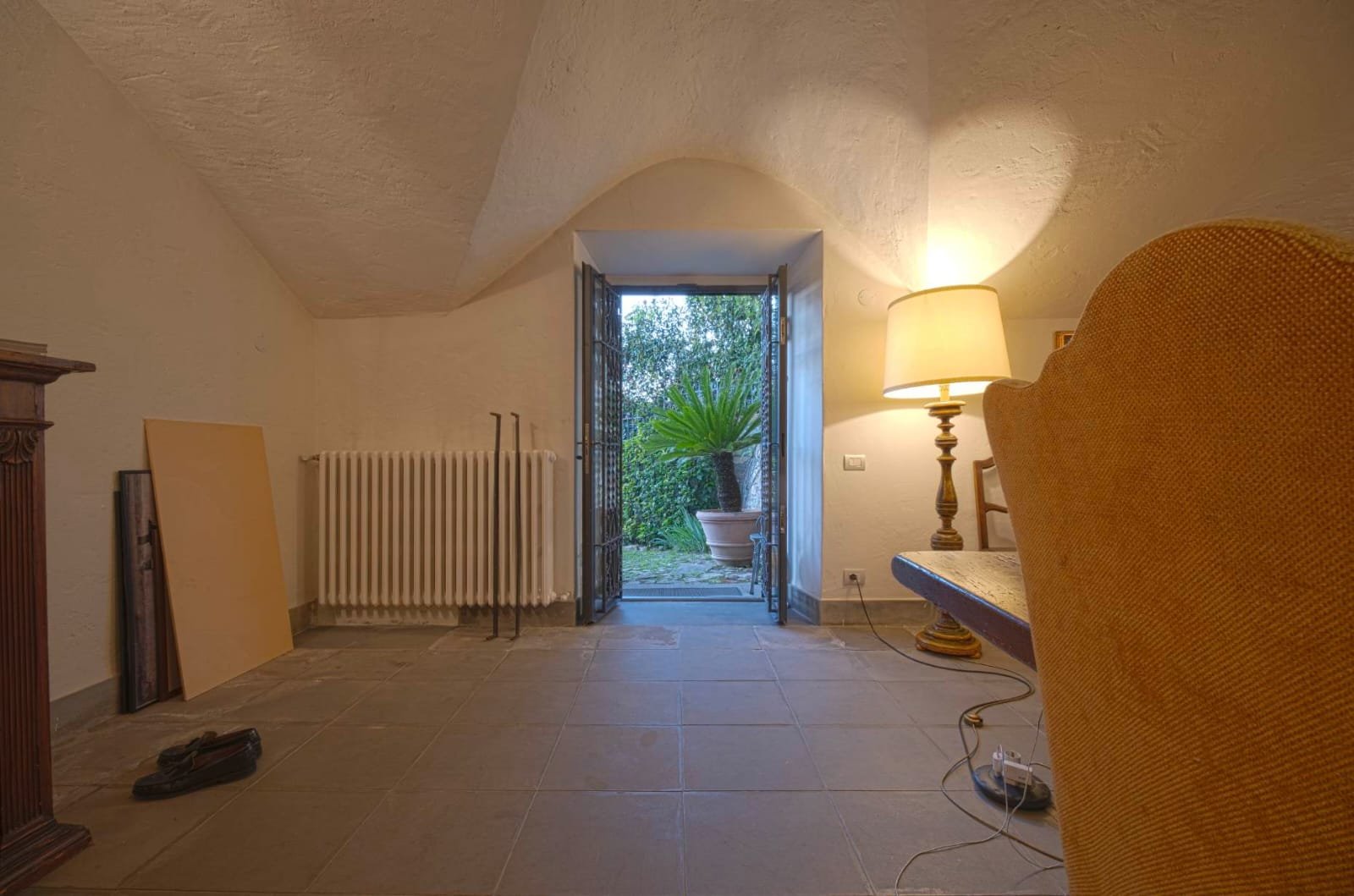 Gli interni conservano i materiali autentici: soffitti con travi a vista e cassettoni, pavimenti in cotto e dettagli in pietra serena. Le ampie camere e le zone giorno si aprono su balconi panoramici, mentre la doppia esposizione garantisce luce naturale in ogni ambiente.