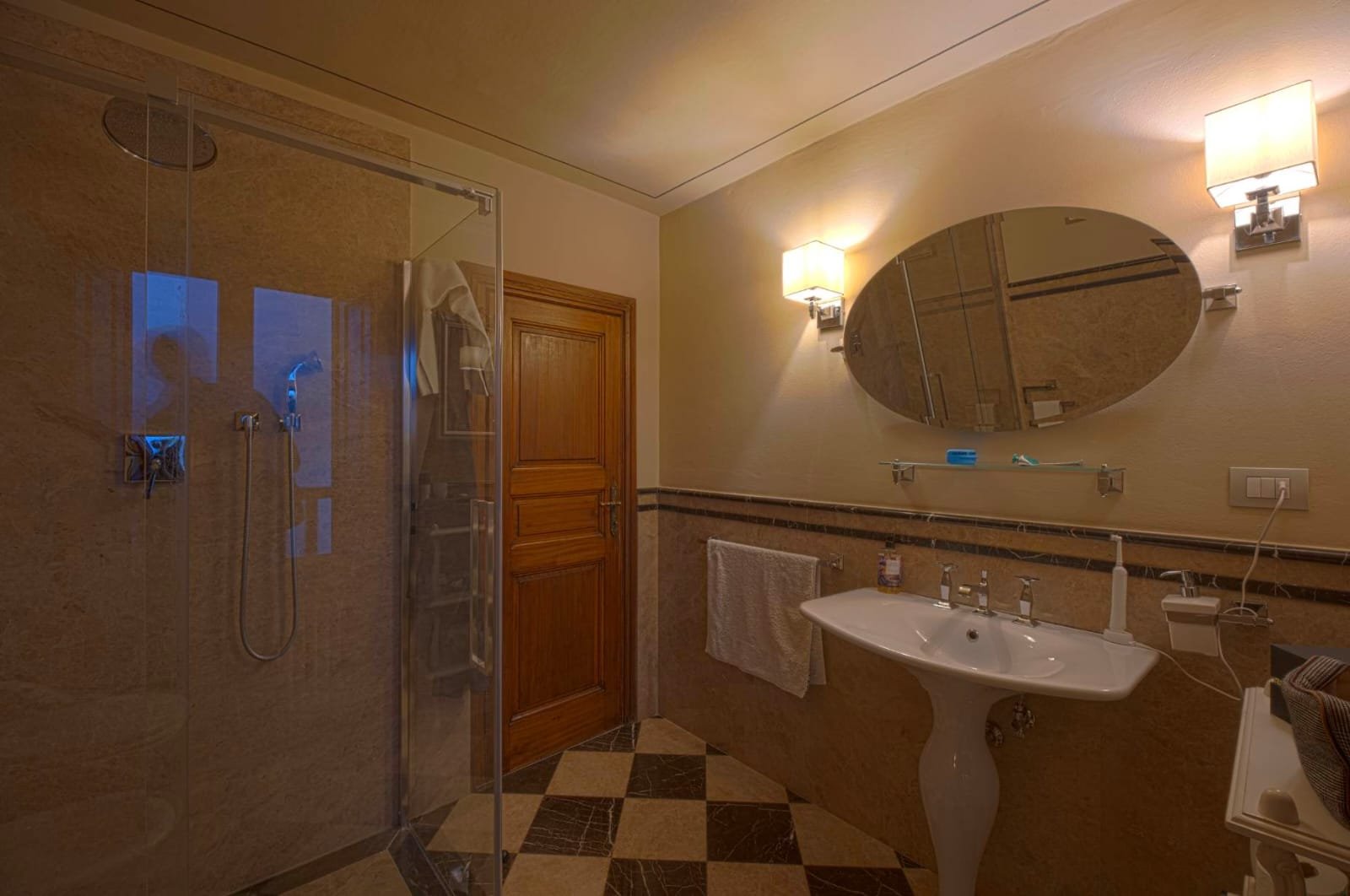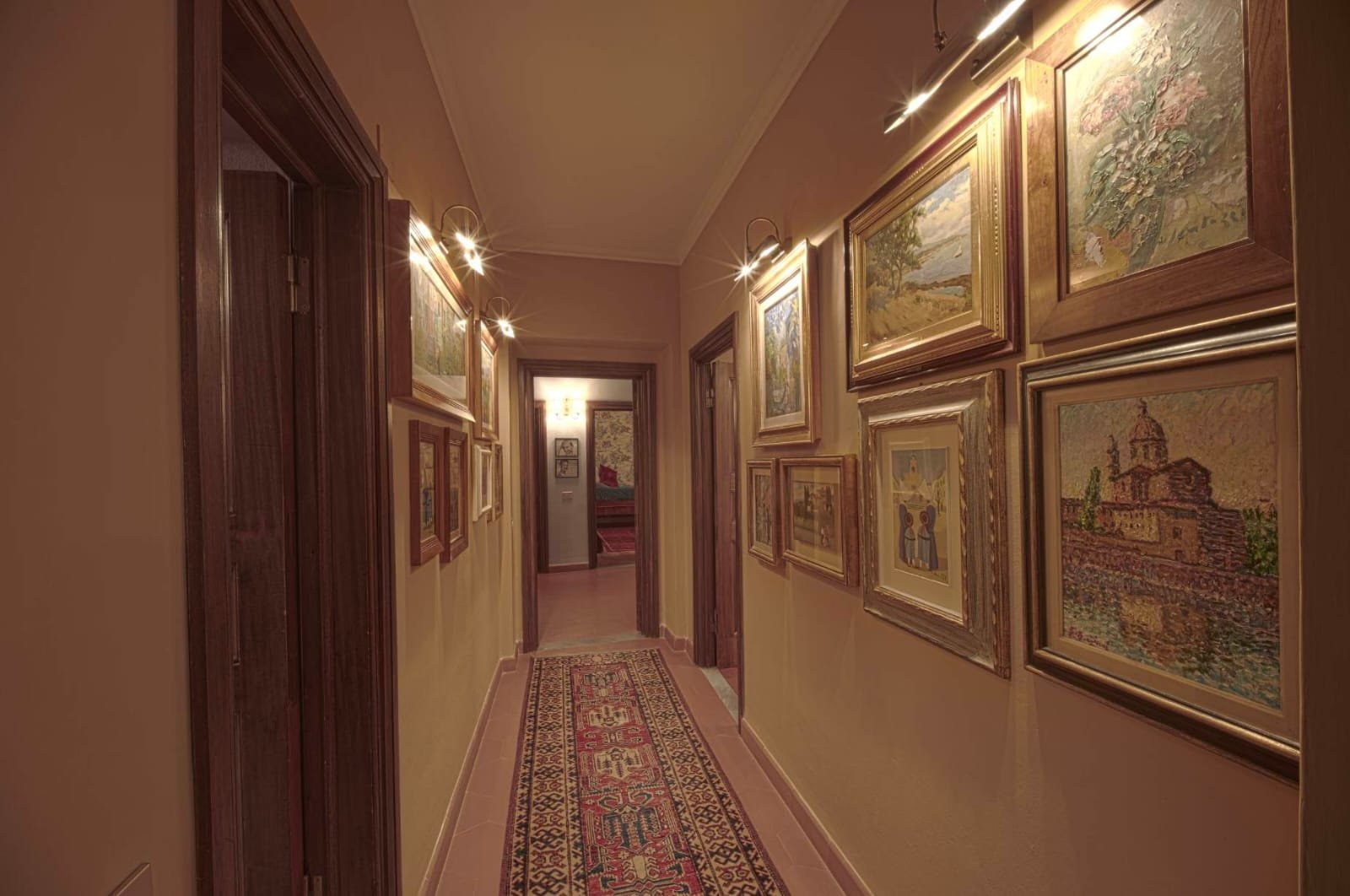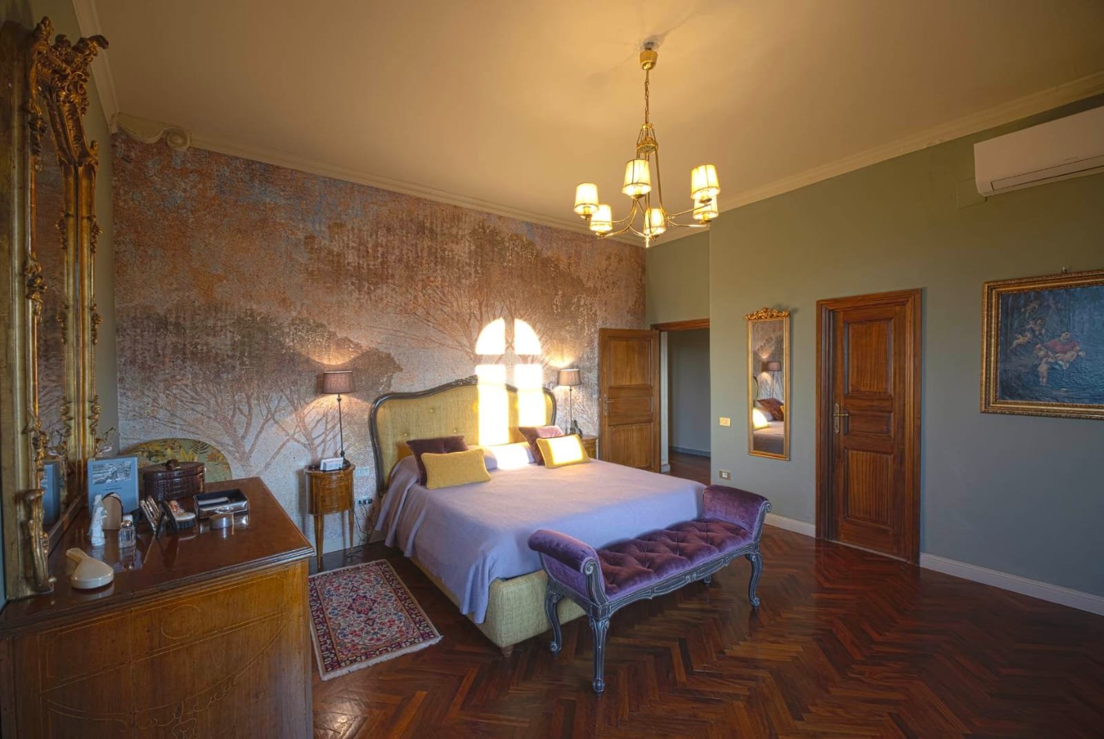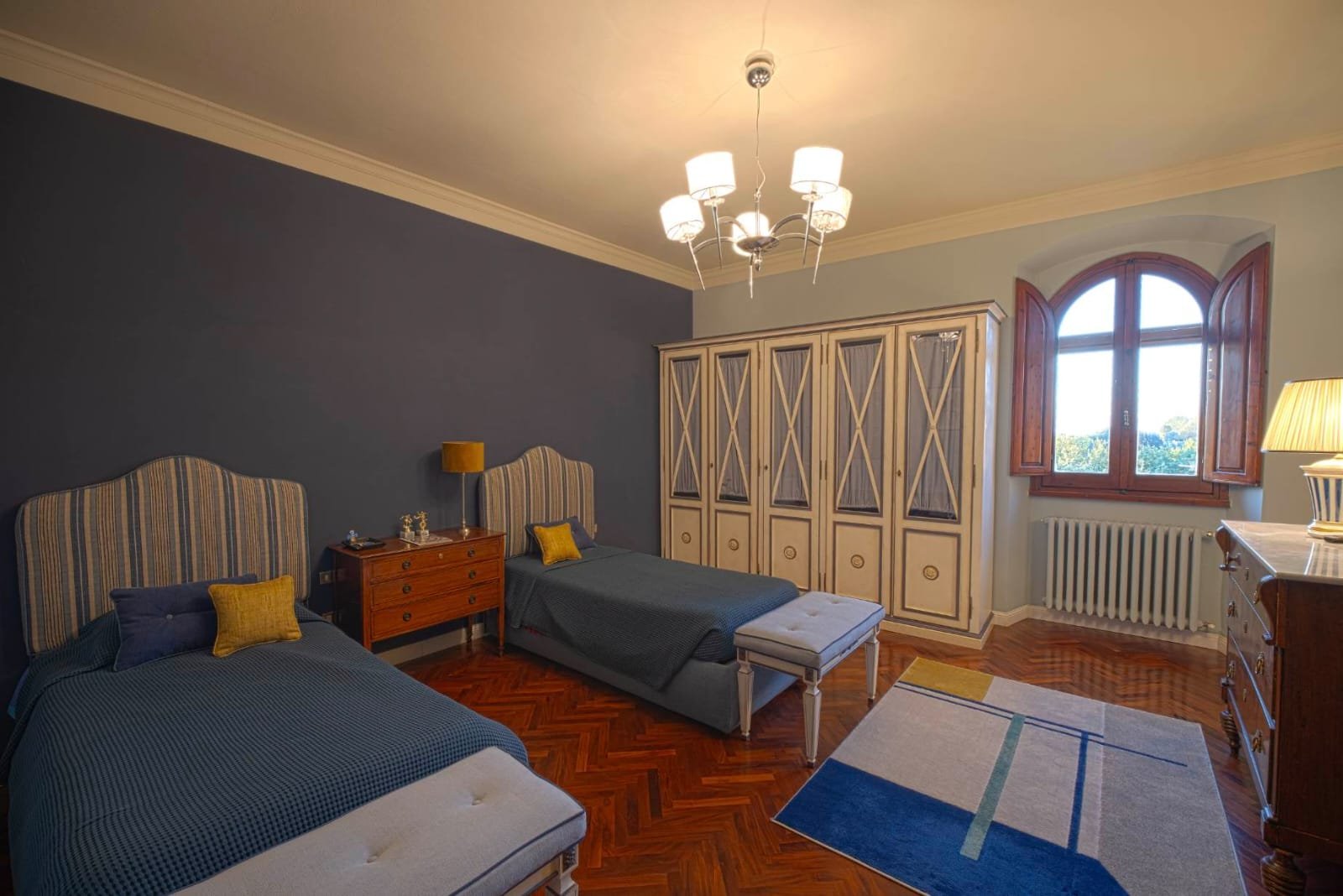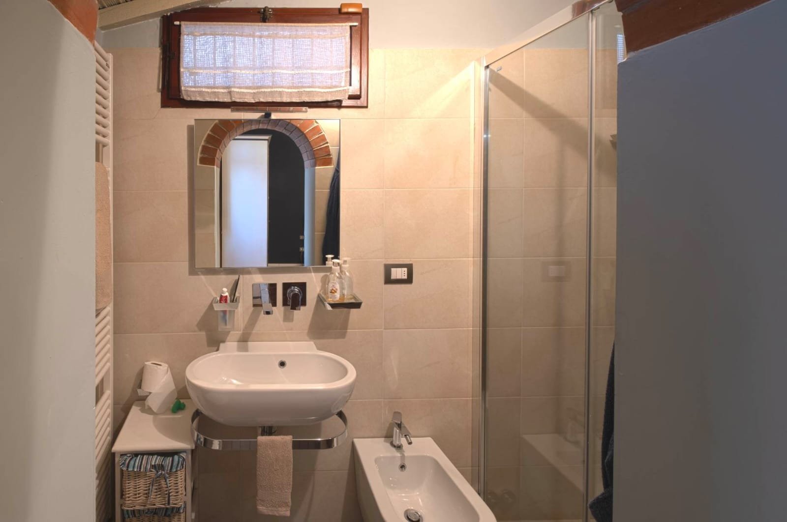 Gli interni conservano i materiali autentici: soffitti con travi a vista e cassettoni, pavimenti in cotto e dettagli in pietra serena. Le ampie camere e le zone giorno si aprono su balconi panoramici, mentre la doppia esposizione garantisce luce naturale in ogni ambiente.