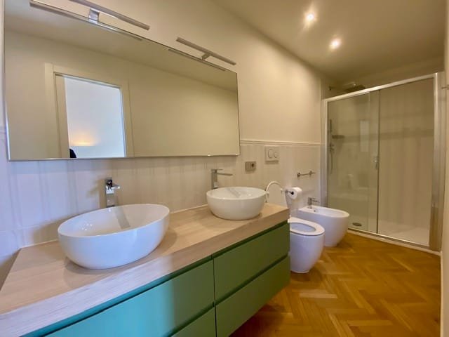 La villa dispone di 3 bagni moderni, soluzioni arredate di pregio e dettagli raffinati che rendono ogni ambiente unico. L’appartamento è pensato per chi desidera una residenza elegante, immersa nel verde e pronta da vivere.